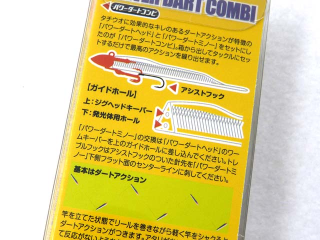 タチウオに効果的なキレのあるダートアクションが特徴の「パワーダートミノー」と「パワーダートヘッド」をセットした「パワーダートコンビ」。