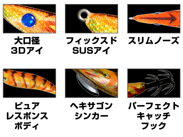 下地の下半分はスレイカに効果のあるレッドに、上半分はゴールドでアピール力をプラスしたオールマイティカラー。エギングの歴史の中で伝統的かつ定番として愛されてきた杉柄を現代版に進化させたアピールカラーです。