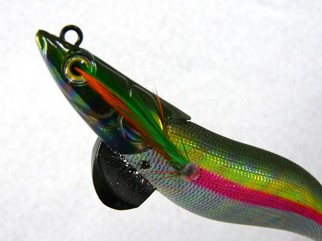 今まで常識とされてきた先端部のラインアイを上方に配置し、軽いジャークで簡単にその特異なダートを発生。フォール姿勢の安定や、根掛かりの減少といったメリットも。水流を強く受けるヘッド部を可能な限りスリムに仕上げ、引き重りを軽減するボディシェイプがダートのキレと操作性を高めます。また、バイトが集中するフォーリング時にも安定した姿勢確保するため、ボディ後部に浮力を持たせています。フラッシング効果を発揮するホログラムヘッドがアピール力を向上。フッキング性能を重視したカスタムカーボンフックを採用。今までのエギでは対応しきれなかった領域を切り開く、先進のモデルです。