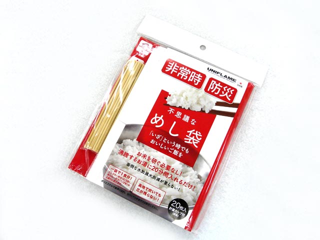 ■使用方法:袋にお米を入れ、付属の竹串で留めて20分湯炊きします。一袋で2/3合(どんぶり一杯分)、1/2合(茶碗一杯分)湯炊きをすることができます。